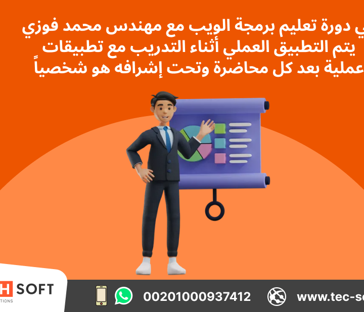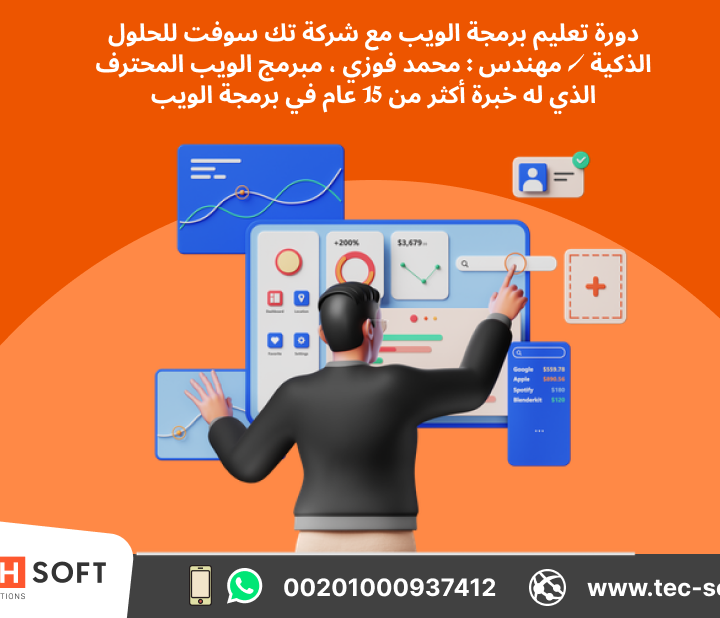 ·         دورة تعليم برمجة الويب مع شركة تك سوفت للحلول الذكية / مهندس : محمد فوزي ، مبرمج الويب المحترف الذي له خبرة أكثر من 15 عام في برمجة الويب .