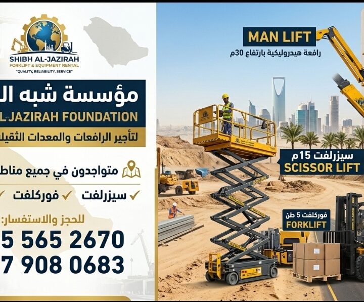 Scissor Lifts & Forklift Rental in Saudi – الحل الشامل لكل احتياجات الارتفاع والرفع! في شبه الجزيرة للتأجير، نقدم سيزرلفت ورافعات مقصية للإيجار (6-18m) وسقالات كهربائية EWP، بالإضافة إلى فوركلفت للإيجار (3-16 طن). متوفرة في الرياض، الدمام، جدة. اتصل 0555652670 🤳 – كل شيء تحت سقف واحد!