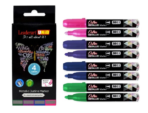 Add a touch of brilliance to every creation with Metallic Markers from Mello Store. Designed for smooth flow and vibrant shine, these markers make your art, crafts, and notes stand out instantly. Whether on paper, glass, or wood, Mello Store delivers premium quality you can trust. Shop now and let your creativity glow like never before.Website:- https://mellostore.in/products/leaderart-unid-metallic-outline-marker-8011-pack-of-4-made-in-malaysia