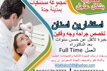 مطلوب أخصائيين وأخصائيات أسـنان تخصص جراحة وجه وفكين